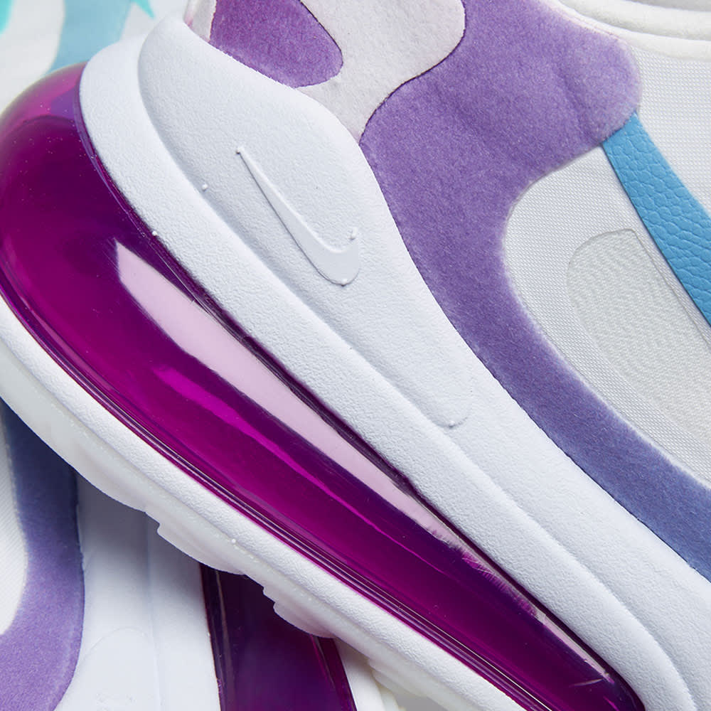 Påverkas av konstvärlden och olika rörelser inom, Nike Air Max 270 Reagera är en del friidrott gymnastiksko och en del duk för konstnärliga uttryck. Efter samma form som tidigare par, den senaste versionen, erbjuds kvinnorna har den viktiga dämpning kombination fötterna och får en delikat lutning för att kompensera för helvita, no-sy övre.