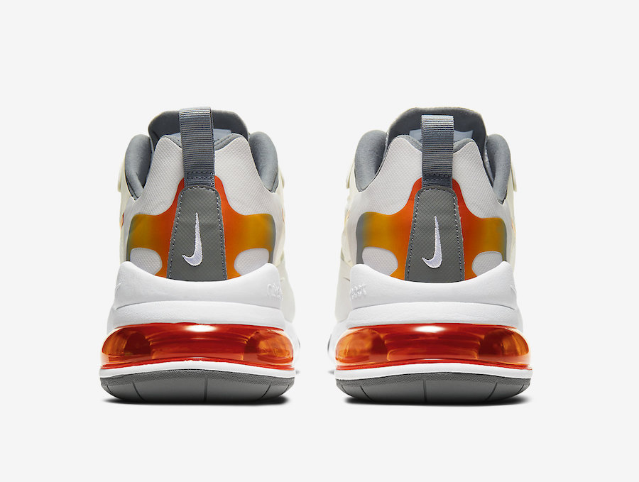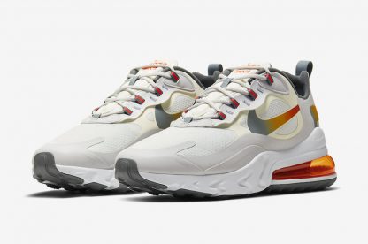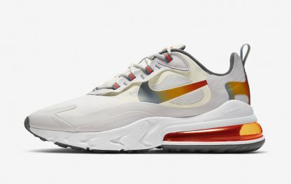 Air Max 270 Reagera ’Gradient’ montrar livfulla accenter på en annars neutral bygga, med ett toppmöte Vit botten med stora grå överlägg. Signaturen Swoosh utmärker sig genom en gradient finish som övergångar från grått till rött, med samma färg mönster upprepas på hälen. Den livsstil löpare ligger ovanpå ett vitt skum mellansula, kontrasteras av en plysch Max Air enhet tonade rött. En mörk grå gummiyttersula ger varaktig dragkraft med en våffla-inspirerad slitbanan.