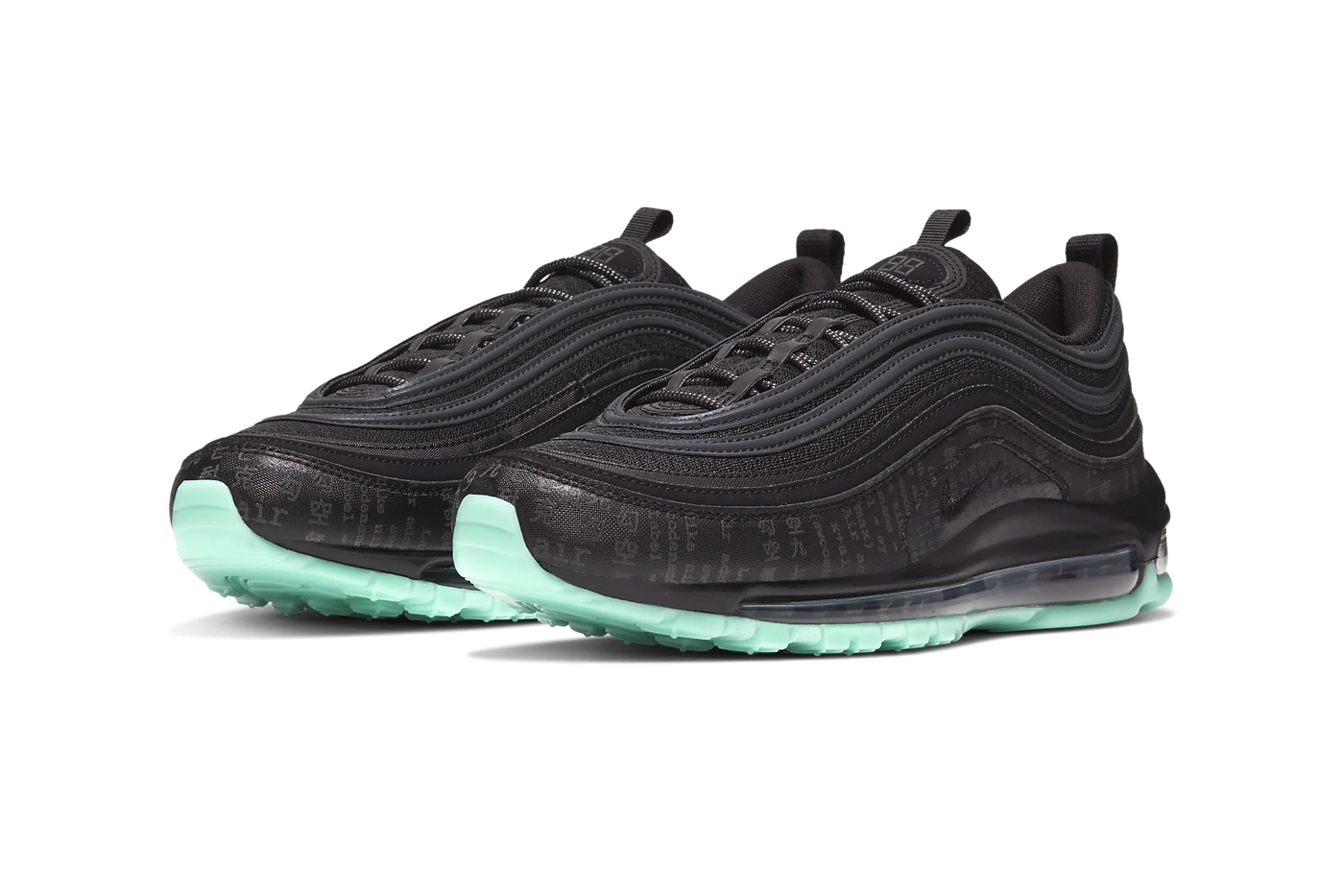 Detta erbjudande har en helt svart övre med digital kod tryck på engelska och kinesiska omslag runt dess stänkskärm. Reflekterande detaljer på toppen av en glöd-in-the-dark yttersula avslutar designen.